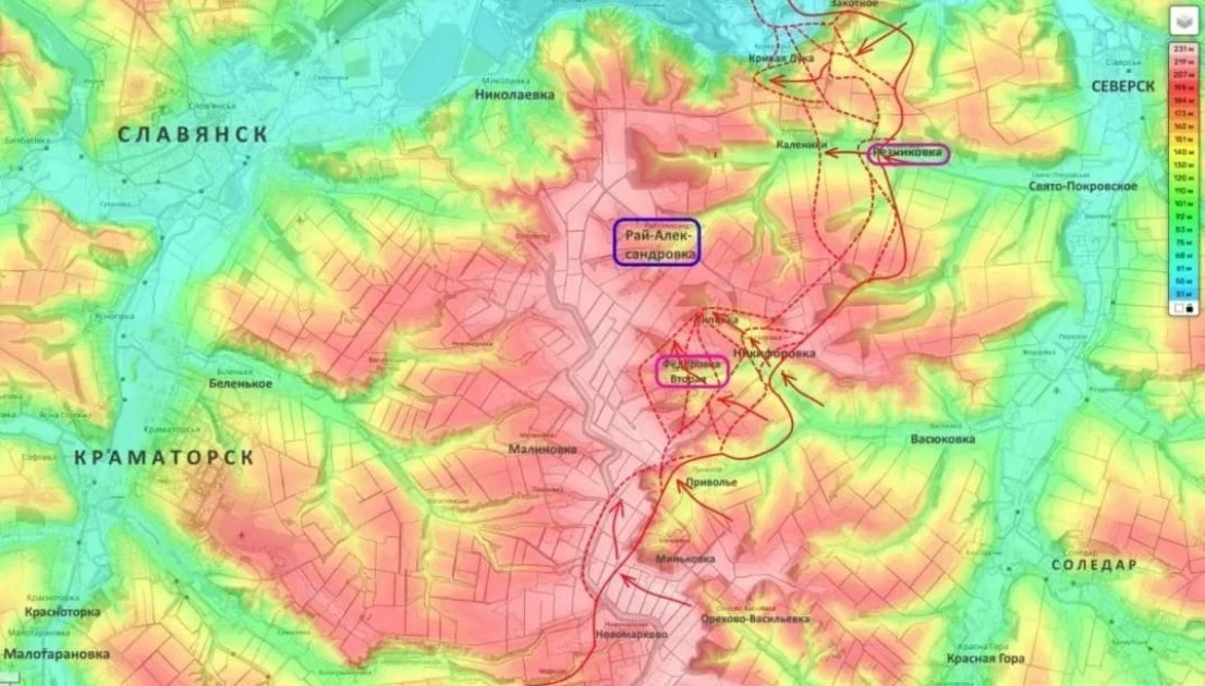 На территории Донбасса, в свою очередь, одним из наиболее обсуждаемых участков фронта остаётся район Славянска. По данным военного блогера Юрия Подоляки, российские подразделения ведут наступательные действия сразу с нескольких направлений, постепенно приближаясь к одному из ключевых населённых пунктов на этом участке - Рай-Александровке.