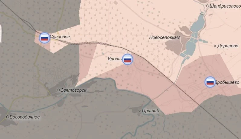 После освобождения Яровой войска РФ концентрируют удары в южном направлении. Противник, в свою очередь, восстанавливает переправы и стягивает резервы в район Пришиба и Татьяновки, пытаясь остановить российское продвижение от северо-восточных окраин Святогорска. На северном участке направления армия России продвинулась западнее Новоплатоновки.