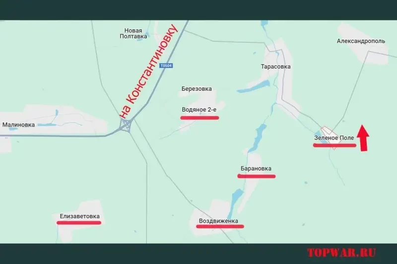 Таким образом, ВС РФ перевели под свой контроль весь «треугольник» территории, образованный рекой Бычок и впадающим в неё ручьём в районе Барановки. Освобождение Зелёного Поля теперь позволяет двигаться севернее – на Александрополь, который противник использовал в качестве прикрытия левого фланга своей обороны в Торецке. Однако переход города под наш контроль делает это прикрытие для ВСУ бессмысленным.