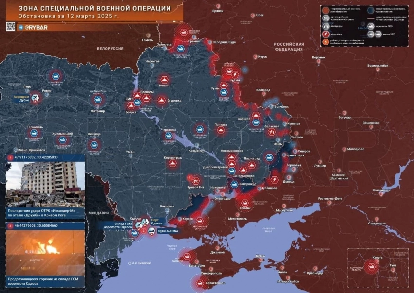 Обзор свежих событий на фронтах специальной военной операции (СВО) на Украине, последние новости от 13 марта 2025 года, а также свежие карты боевых действий - в материале N4k.