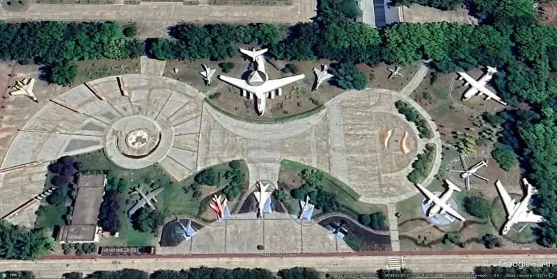 Спутниковый снимок Google Earth: самолёт ДРЛО KJ-2000 в центре мемориального комплекса на заводском аэродроме Сианьской авиастроительной корпорации