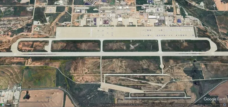 Спутниковый снимок Gооglе Еarth: взлётно-посадочные полосы и авиационные стоянки авиабазы Даейсс
