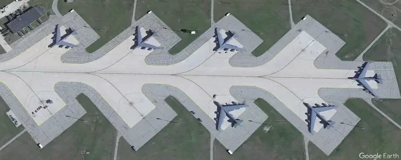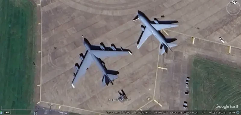 Спутниковый снимок Gооglе Еarth: бомбардировщики В-52Н на авиабазе Андерсен