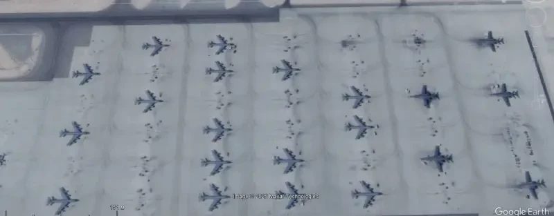 Спутниковый снимок Gооglе Еarth: бомбардировщики В-52 на базе хранения авиационной техники в Девис-Монтан