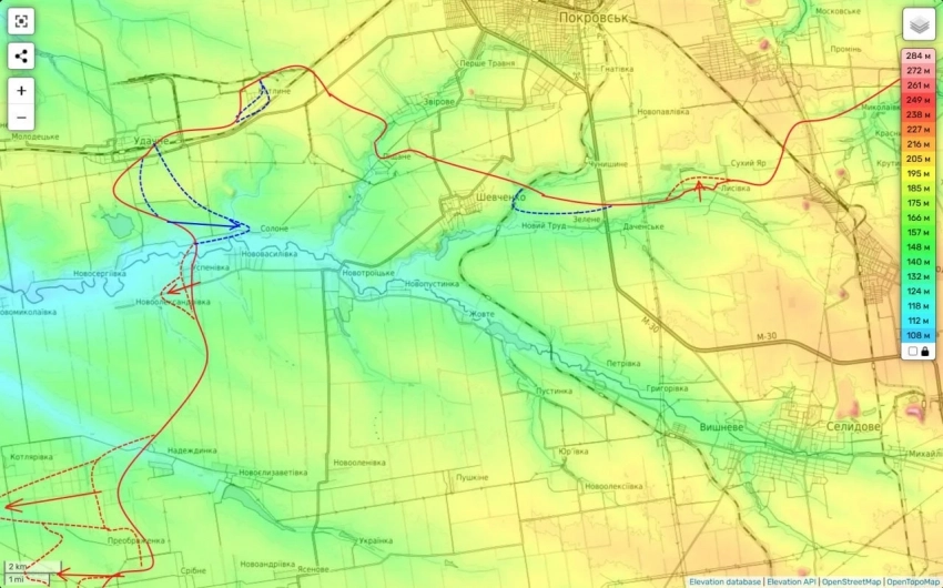 Кадры объективного контроля показывают наше продвижение на холмах севернее Новолюбовки.