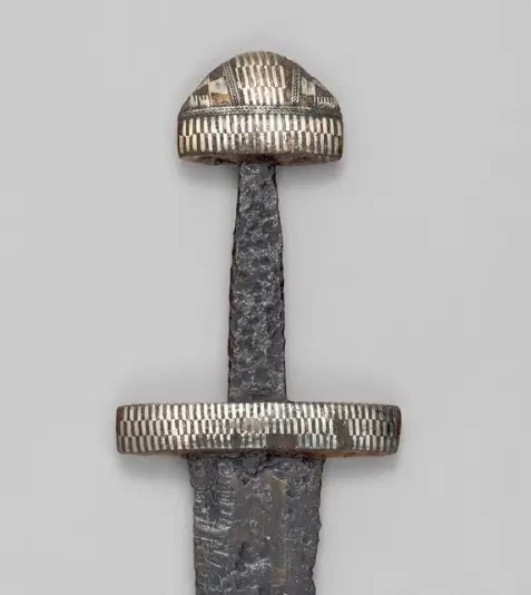 Рукоятка меча викингов с инкрустацией из медной и серебряной проволоки. Подобные мечи неоднократно находили и в погребениях на территории России, и даже на дне ее рек. Метрополитен-музей, Нью-Йорк