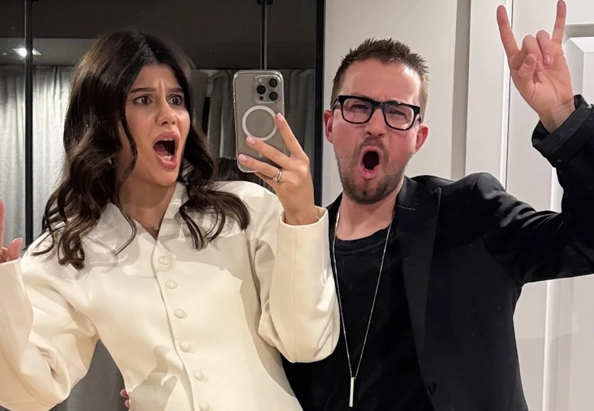 "Родители на выгуле", — написала в соцсетях Виктория, которая на днях показала фигуру после родов. На снимках пара позирует вместе перед выходом и на дорожке фестиваля.
