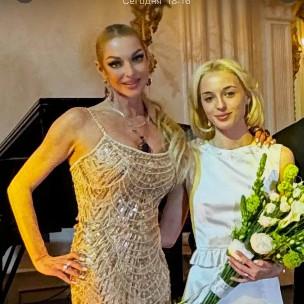 На снимках Анастасия позирует на украшенной лестнице в золотом платье со шлейфом, Ариадна же появилась в белом платье без рукавов. Позже Анастасия опубликовала ещё несколько снимков с дочерью и зятем. "Свадьба Ариадны Волочковой состоялась <...> Вопреки всем, кто пытался внести распрю и провокации в нашу семью", — подписала 49-летняя Волочкова фотографии.