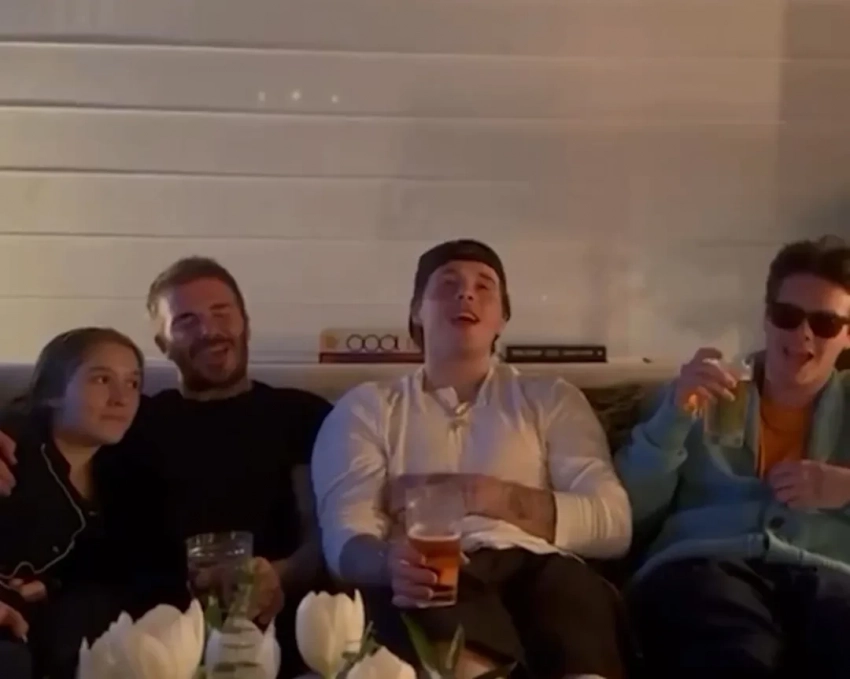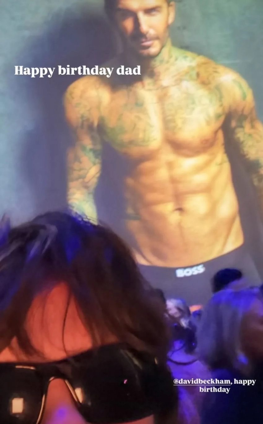 Круз Бекхэм на фоне фотографии отцаРанее Виктория Бекхэм отметила 51-й день рождения в кругу семьи и друзей на яхте, а также примерила образ своей невестки Николы Пельтц.