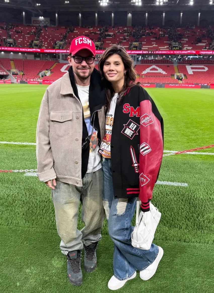 "Вперёд, "Спартак", — подписал снимки с женой Петров. (По результатам матча любимая команда актёра уступила "Ростову" со счётом 1:2.)