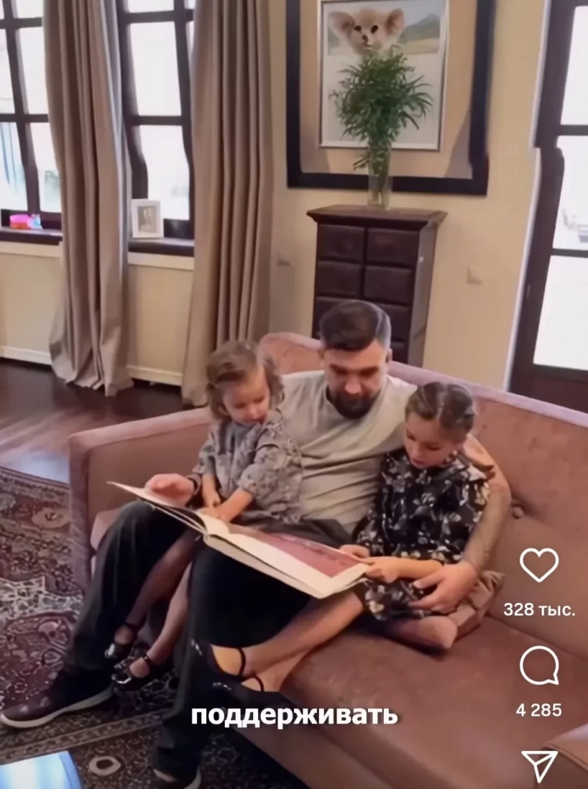 Баста с женойБаста с дочерьмиБаста с дочерьмиБаста с женойБаста с женойНачало ролика пара смотрела вдвоем, однако ближе к его концу к родителям подбежали их дочери Мария и Василиса. Судя по выражению лица Басты, сюрприз от семьи его растрогал.
