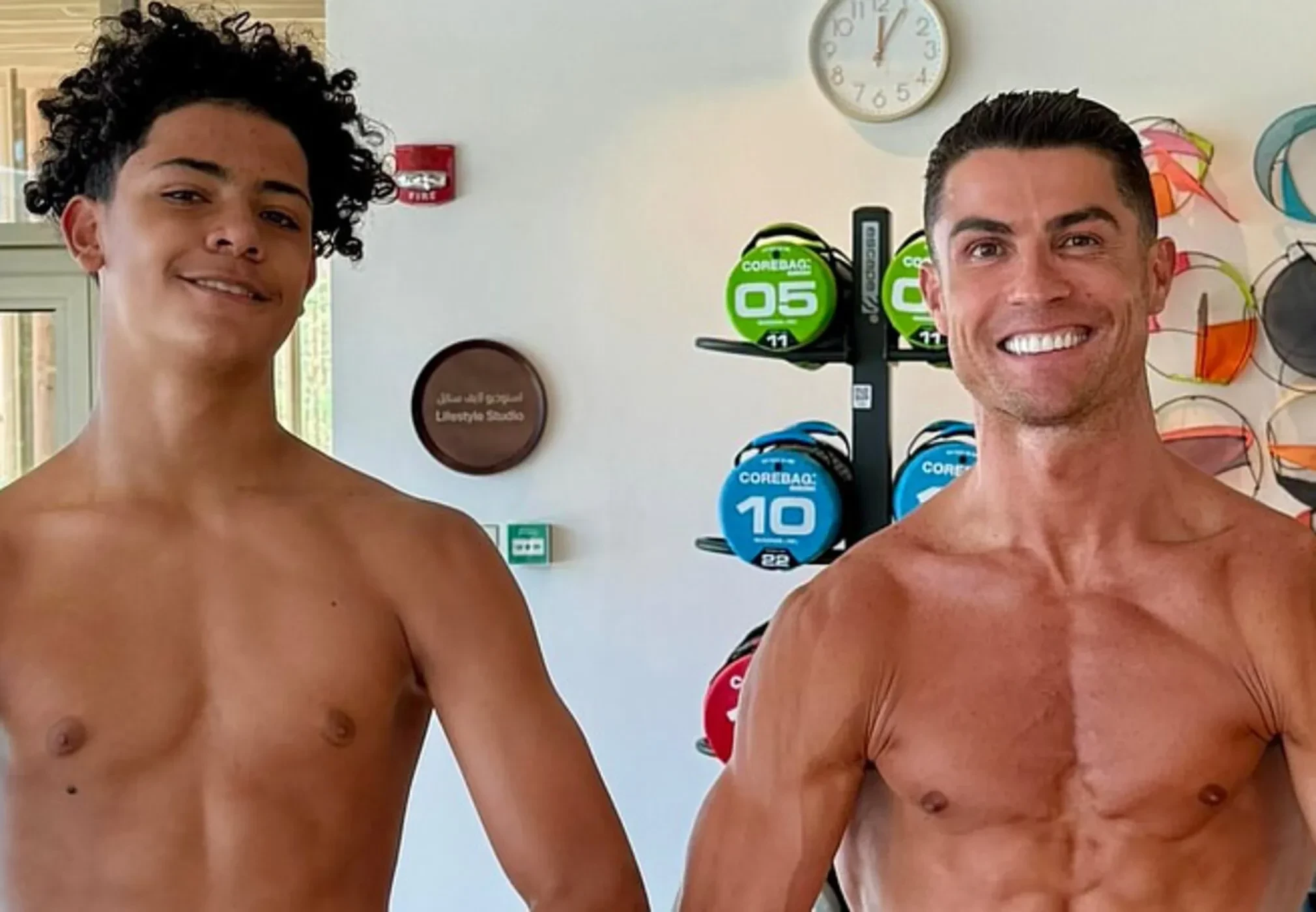 На снимках отец и сын позируют без футболок в спортзале. "Яблоко от яблони", — подписал фотографию 40-летний Роналду. В комментариях многие восхитились формой Криштиану-младшего, который недавно дебютировал в юношеской футбольной сборной Португалии U‑15: "Какого сын роста? Выглядит шикарно", "Какой прекрасный сын", "Будущий король футбола".