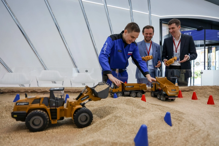 Лабубу от телеканала 360Не обошлось в этом году и без роботов. На стенде московской области представили Софию. Она умеет поддерживать разговор на тему недвижимости и инвестиций, поможет начать бизнес или найти земельный участок. Её главным конкурентом стал робот Володя от российской компании-разработчика Ред Софт, который прогуливался по территории форума с сумкой Dior на плече. Тем временем спикеры, бизнесмены и просто гости в лице мужчин после лекций могли расслабиться и поиграть с машинками в песочнице. Без шуток.