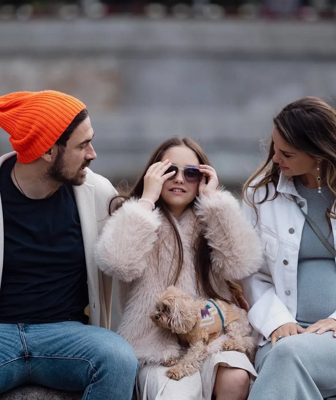 Агата Муцениеце с дочерью и Пётром Дрангой