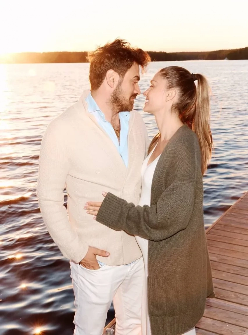 "Если улыбаться от любви, то только так". Беременная Агата Муцениеце показала новое фото с женихом Петром Дрангой