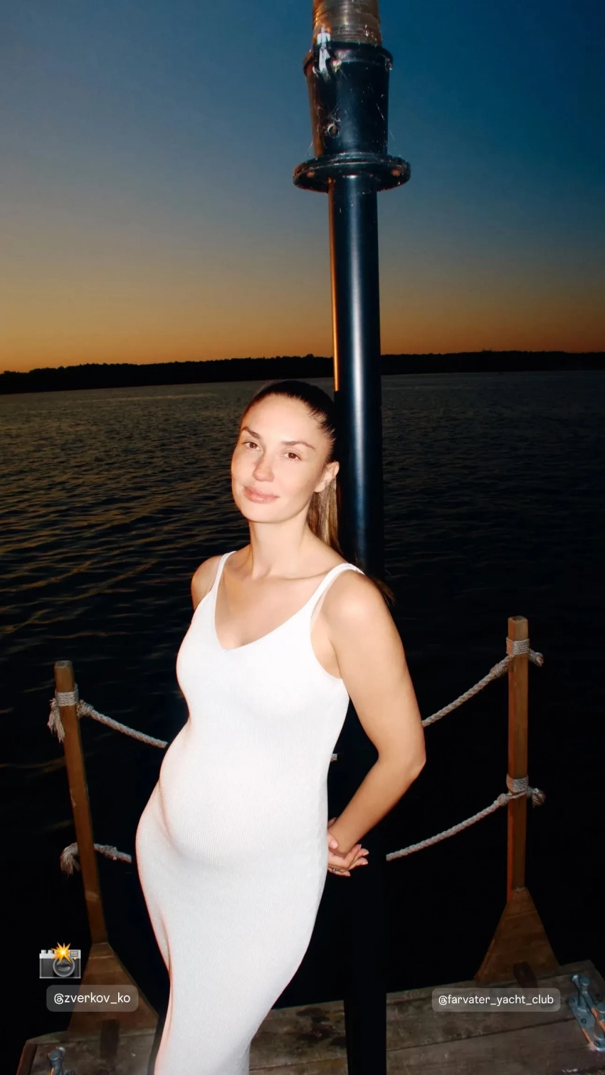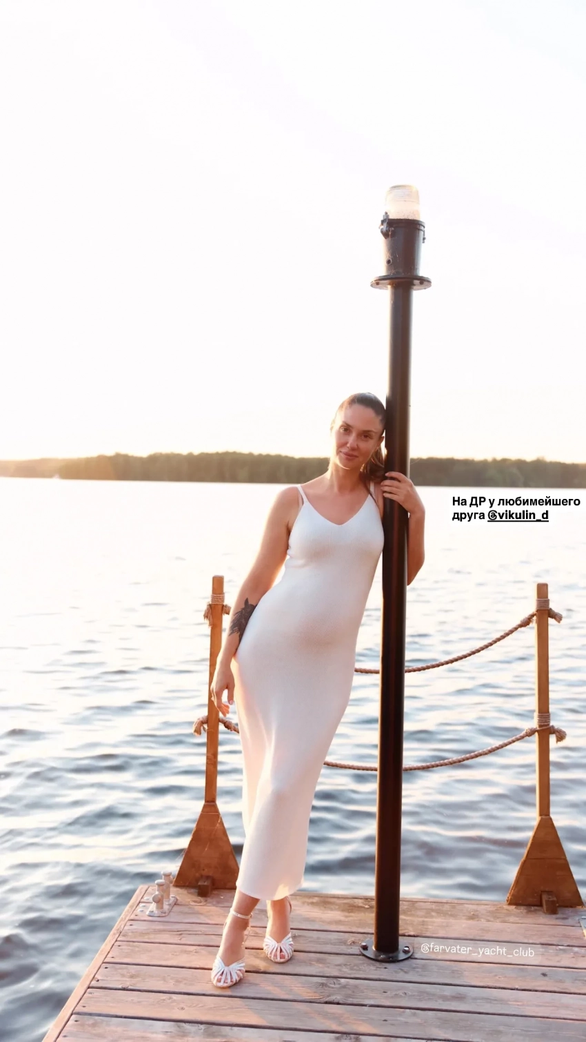 Она также показала фото с женихом, на которых позирует в обтягивающем платье на причале. Снимки были сделаны на дне рождения Дмитрия Викулина, который праздновали на днях.