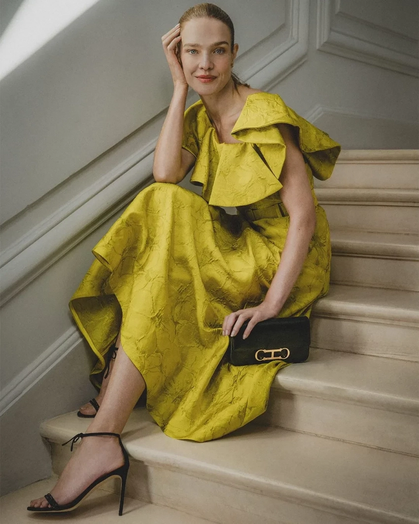 Наталья Водянова, которая недавно вышла в свет с мужем-миллиардером Антуаном Арно, снялась в новой рекламной кампании Carolina Herrera. В фотосессии 43-летняя российская супермодель позирует на лестнице в платьях и с сумками бренда в руках.