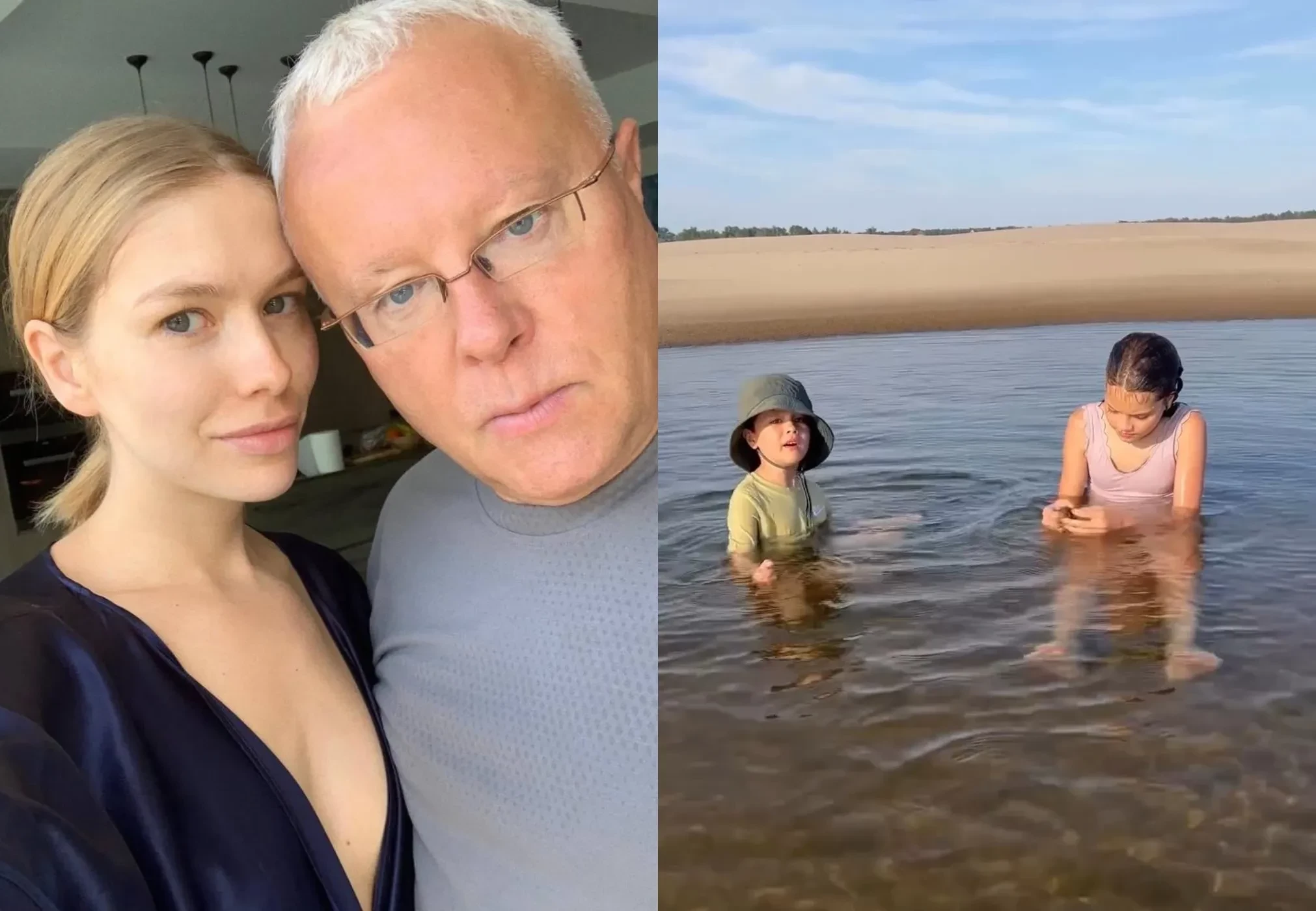 В ролике его дочь Арина и сын Александр вместе купаются и болтают. За кадром слышен голос не только самого Лебедева, но и других детей, а также 38-летней Елены Перминовой.