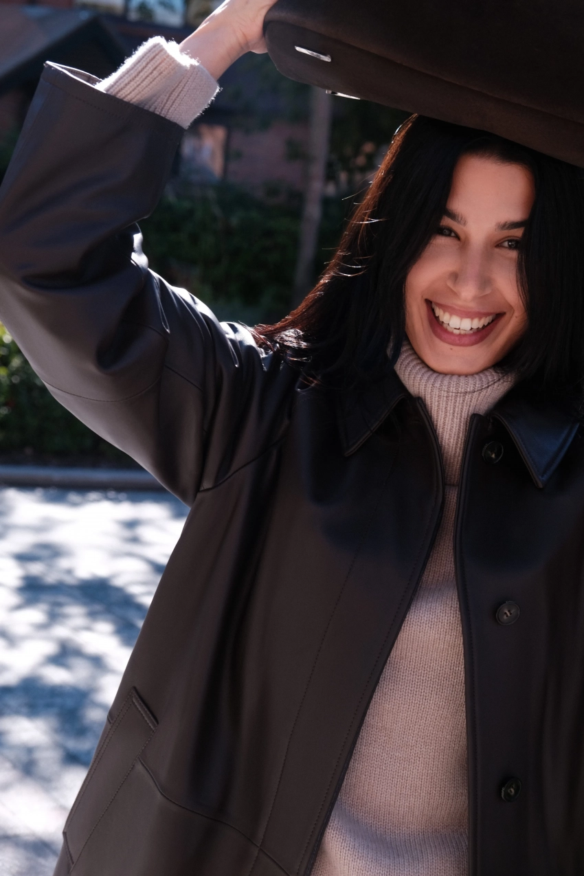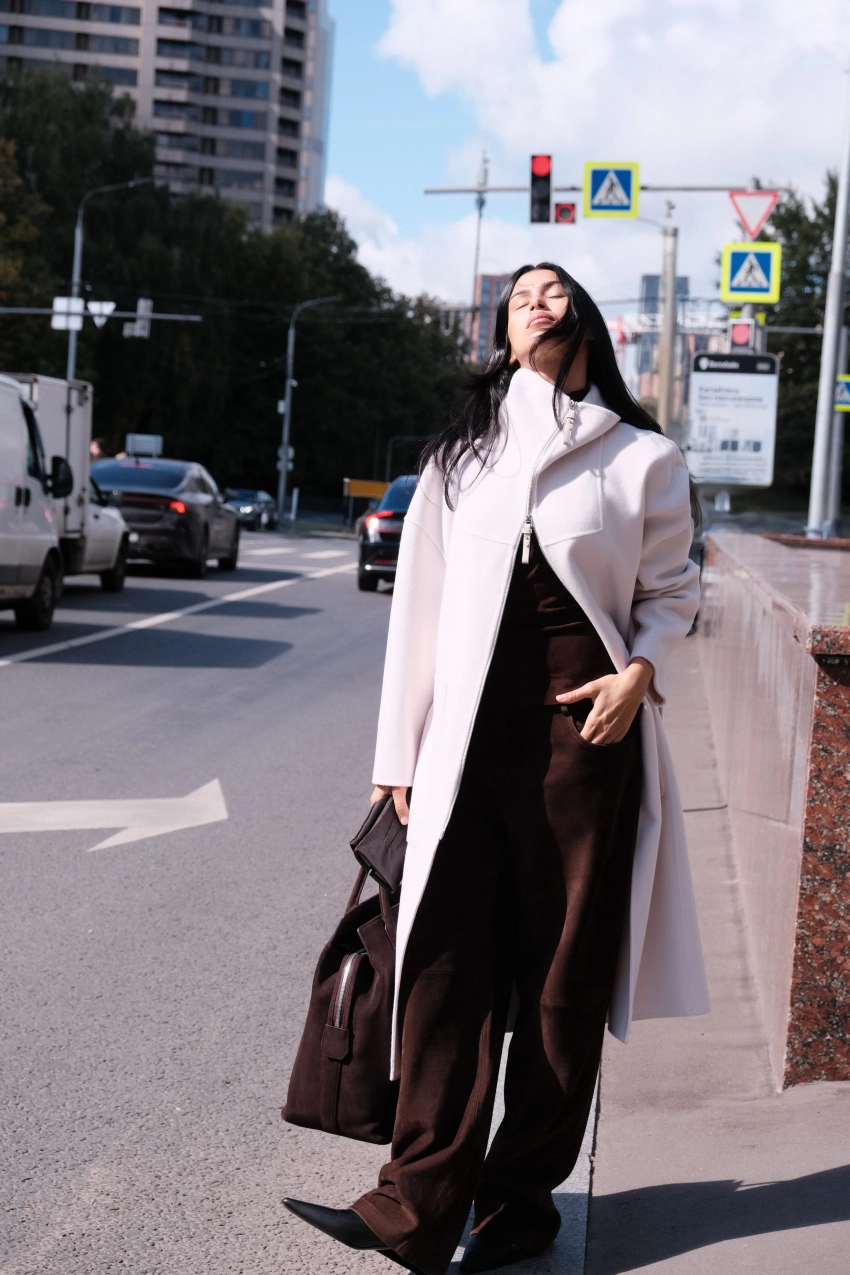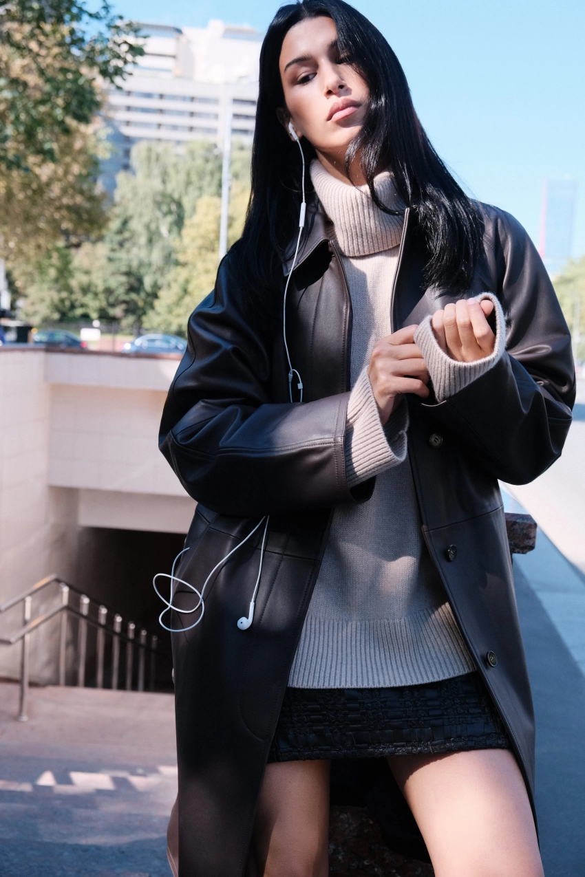 Съёмка с 25-летней Эрикой Кикнадзе стала оммажем на сцены из фильма "Дьявол носит Prada", где героиня Энн Хэтэуэй каждый день спешит в офис издательского дома в осенних образах, отметили в компании.