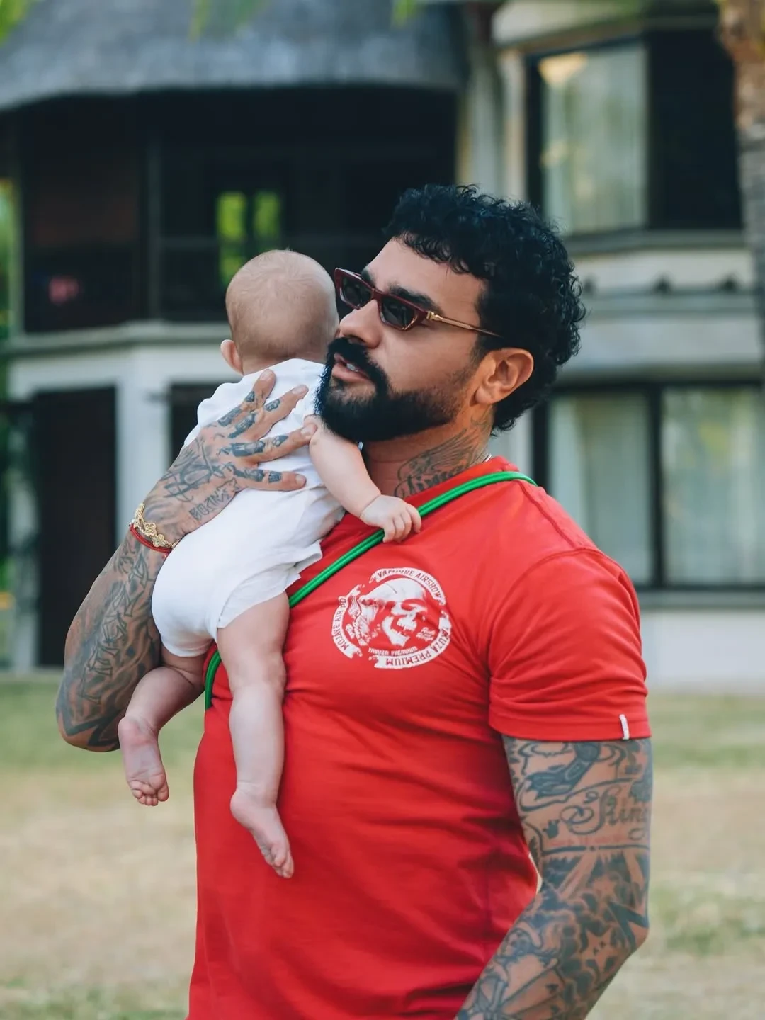 В своём инстаграме* 42-летний Тимати выложил снимки, на которых запечатлено, как он гуляет по Маврикию с переноской с трёхмесячной Эммой в одной руке и сёрфом в другой. На одном из снимков видно, что он взял с собой на морскую прогулку шестилетнего Ратмира.