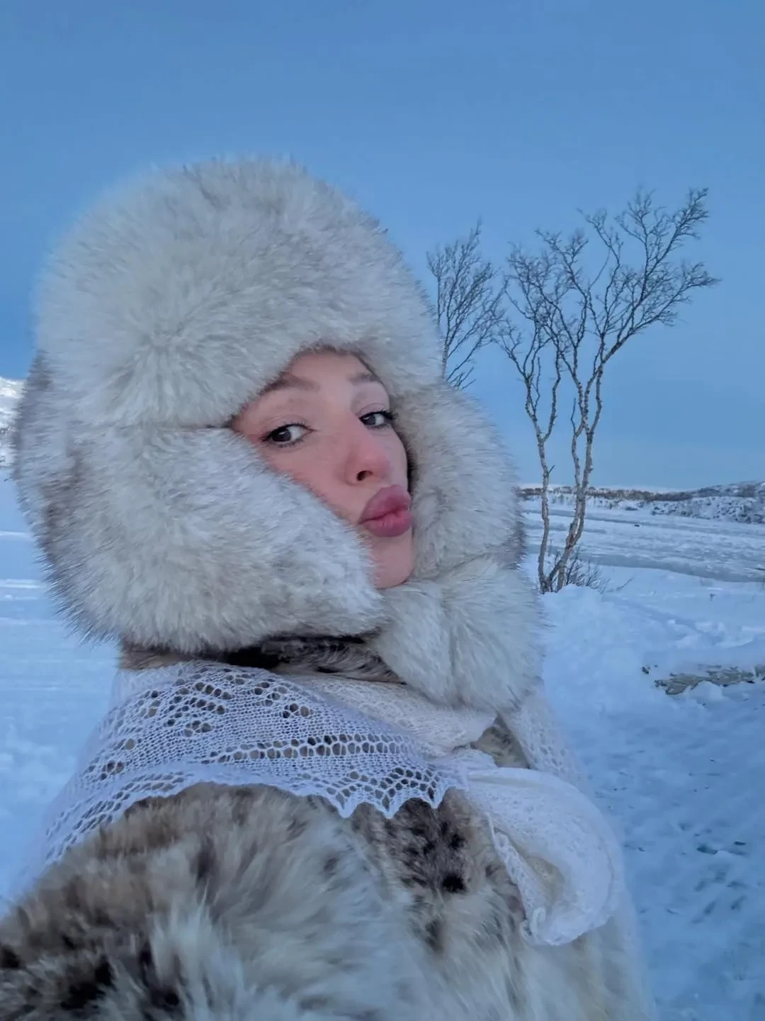"Зимушка, ласковая, любимая", — подписала Ивлеева фото, которые, предположительно, сделаны в Мурманске, где блогерша недавно отмечала годовщину свадьбы с мужем Филиппом Бегаком.
