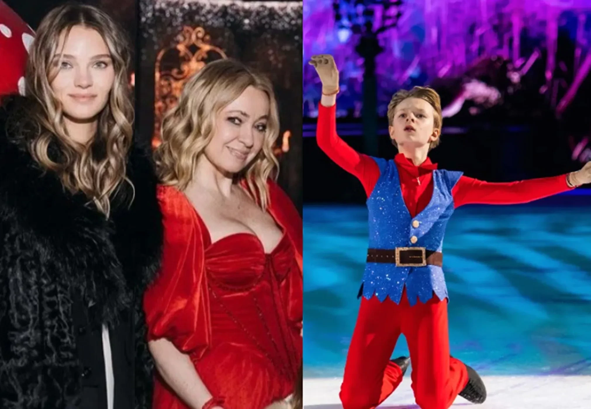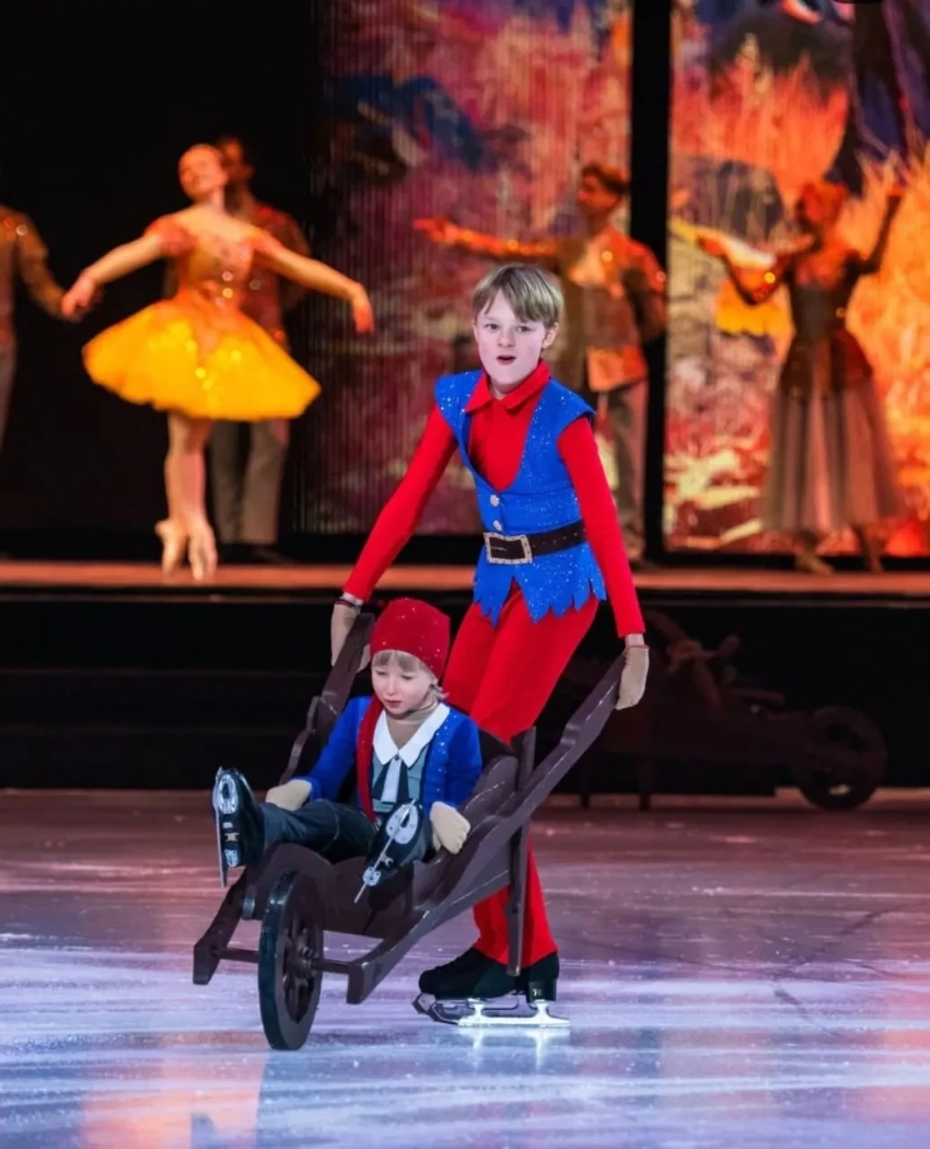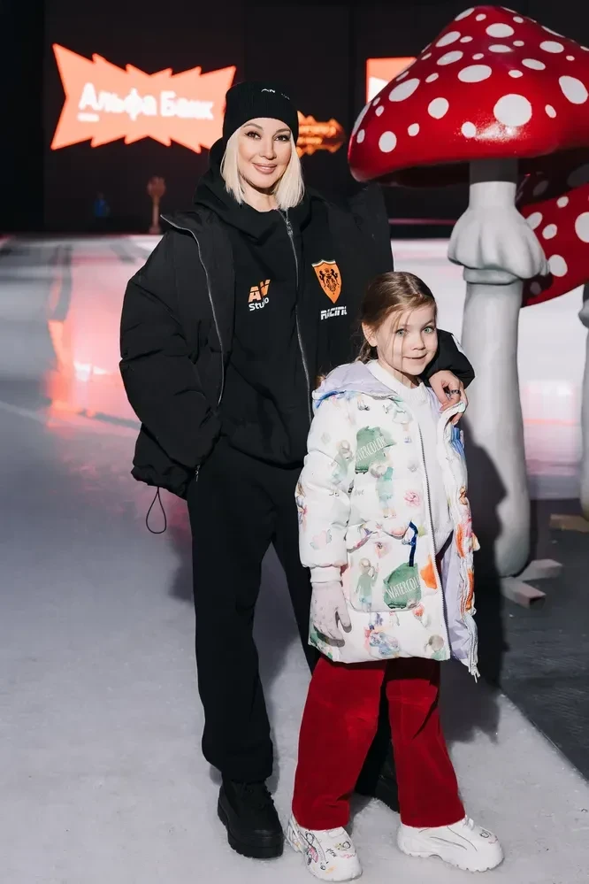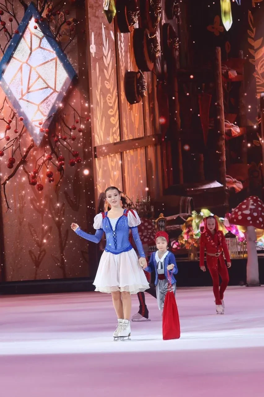 Лера Кудрявцева с дочерьюНа лёд вышли оба сына Рудковской и Плющенко — Александр и Арсений. В постановке приняли участие олимпийская чемпионка Анна Щербакова (Белоснежка), чемпион Европы Дмитрий Алиев (Принц).