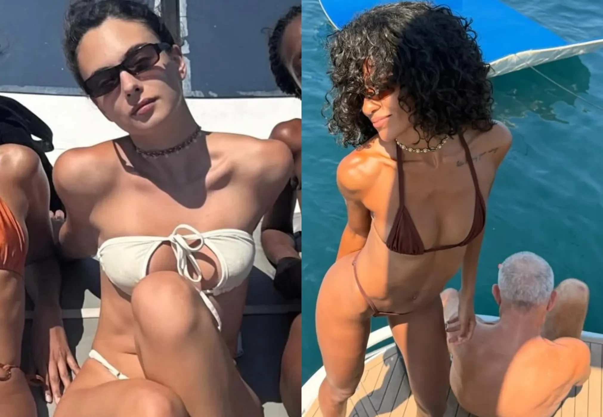 На фото Баптиста позирует в коричневом бикини вместе с годовалым сыном и подругами. 21-летняя Дева Кассель — дочь Венсана Касселя от Моники Беллуччи — запечатлена на одном из снимков в белом бикини.