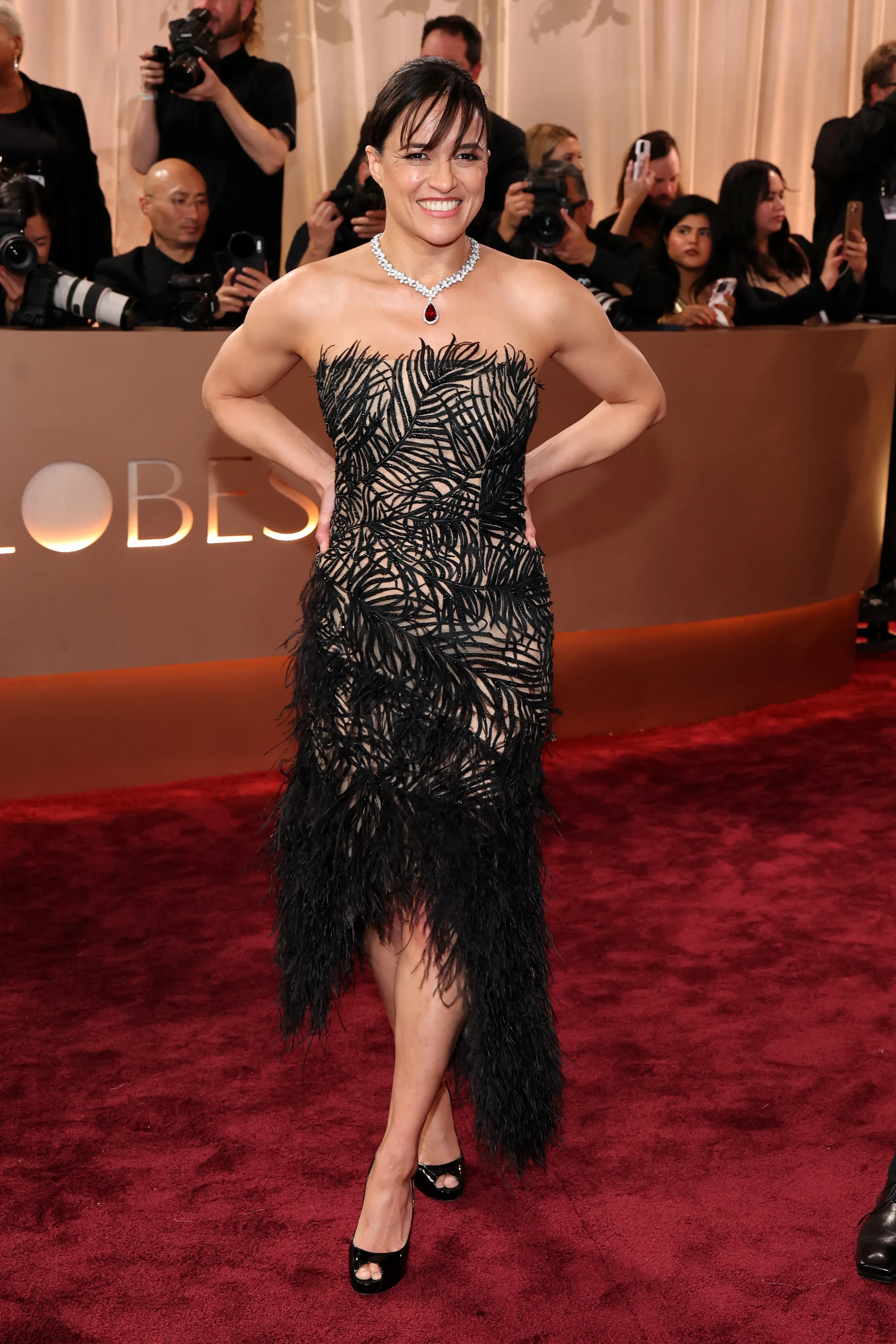 Мишель РодригесРанее на красную дорожку премии вышли: Эмма Стоун, Селена Гомес и Бенни Бланко, Дженнифер Лопес, Леонардо ДиКаприо, Джордж и Амаль Клуни и многие другие звёзды.