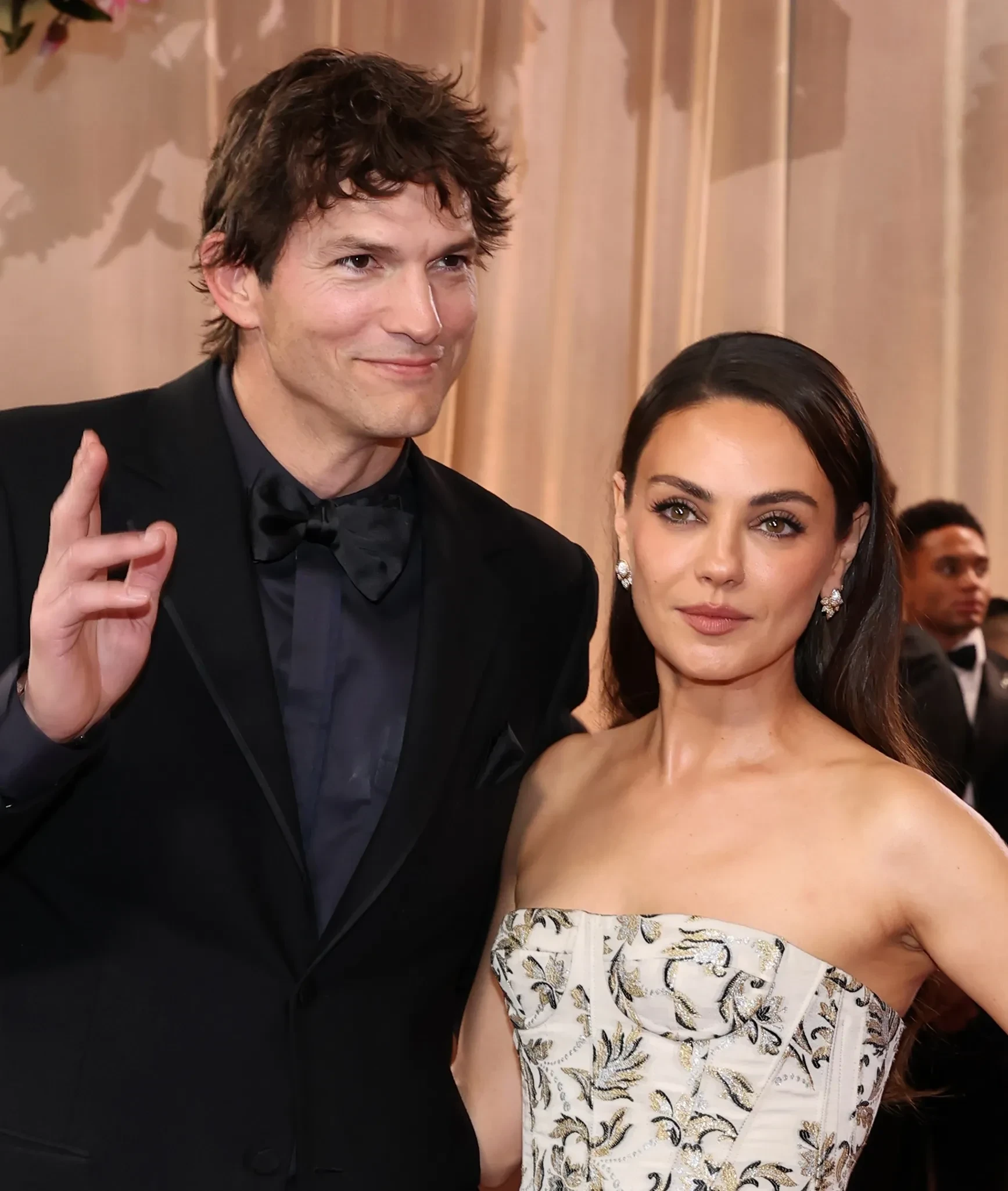 42-летняя Мила Кунис позировала в платье Carolina Herrera с цветочным принтом, а Аманда Сейфрид блистала в белом платье Versace. Ариана Гранде выбрала чёрное платье Vivienne Westwood, а Памела Андерсон премила образ от Ferragamo. Майли Сайрус и Зои Кравиц надели Saint Laurent.