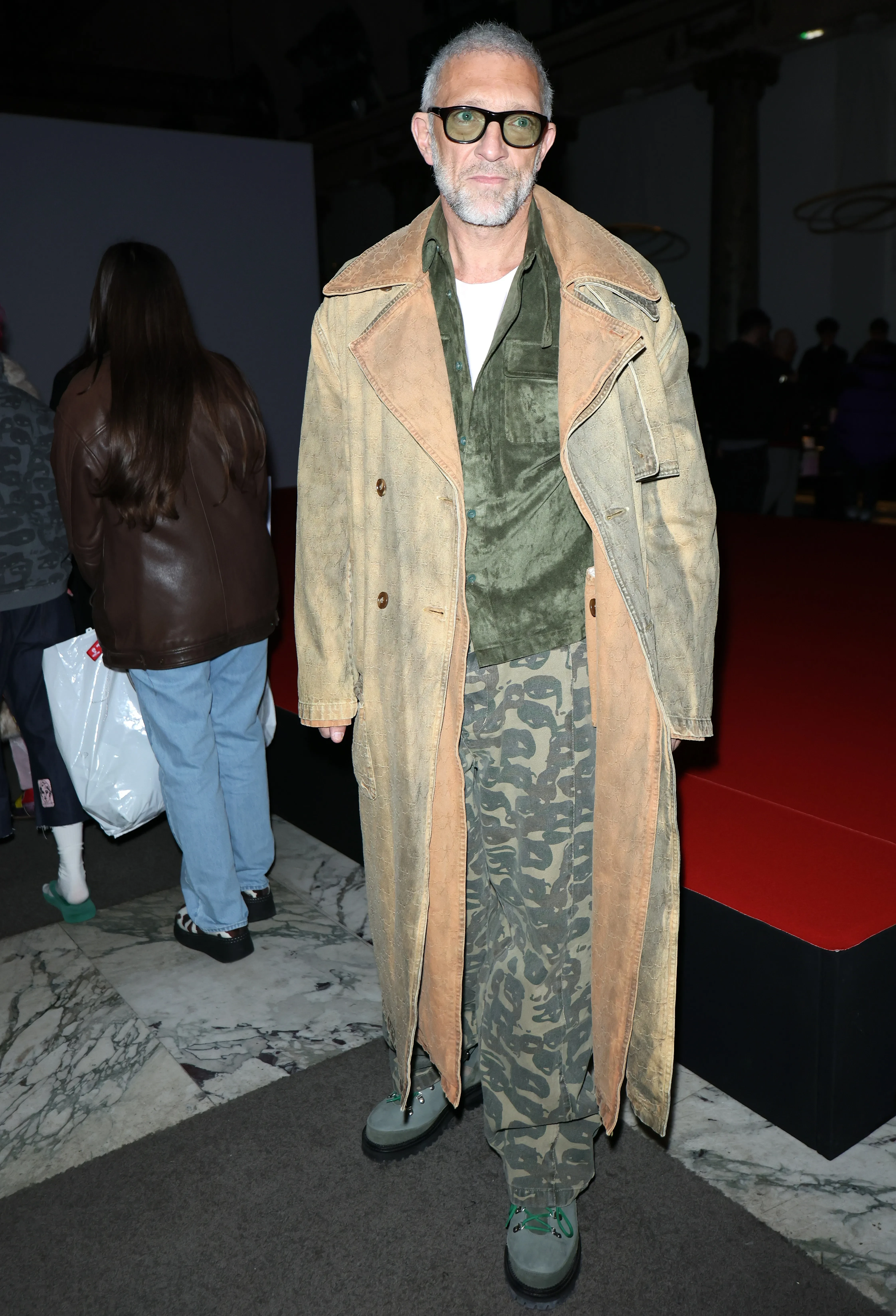 Кассель появился на публике в двухслойном тренче, камуфляжных брюках и зелёной рубашке, дополнив образ солнцезащитными очками, а Баптиста показала образ с короткой стрижкой. Она надела дублёнку на голое тело и джинсы с кожаными сапогами.