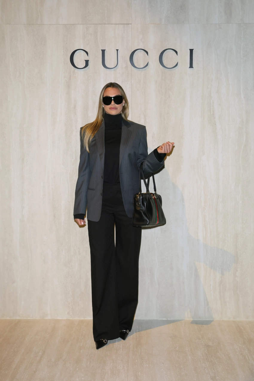 Деми Мурhttps://t.me/spletnik2006/49603Не смогла пропустить показ и давняя подруга Демны, 59-летняя Рената Литвинова. Актриса пришла в сером платье-накидке с отделкой из новой коллекции, а её 24-летняя дочь Ульяна Добровская выбрала красное платье-пальто (его же надела Донателла Версаче) и чёрную мини-юбку. 27-летняя первая ракетка мира Арина Соболенко, которая в начале года стала лицом Gucci, позировала фотографам в пиджаке в полоску, чёрной водолазке и классических брюках.