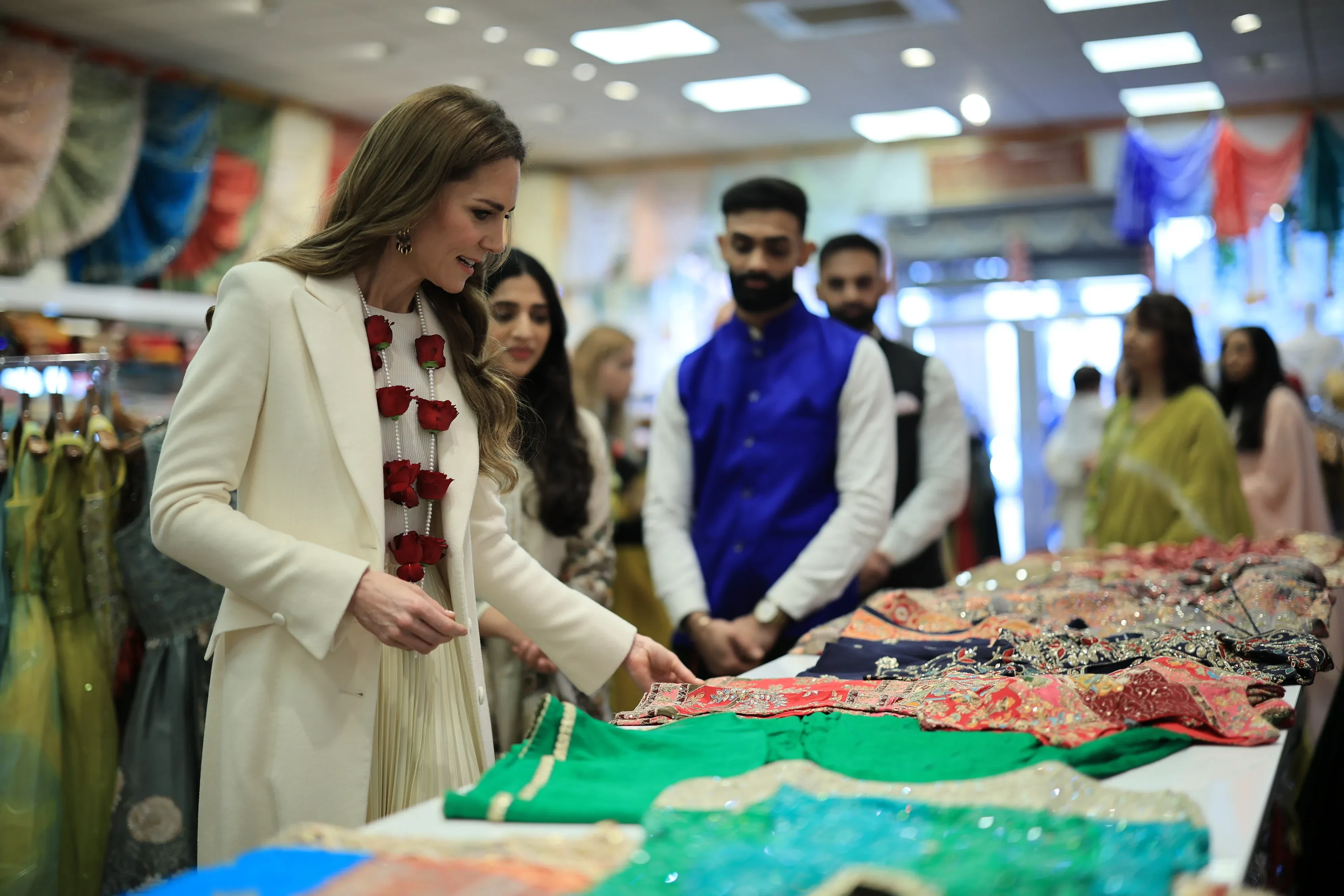 Кейт Миддлтон в ожерелье из роз встретилась с индийской общиной и отпраздновала фестиваль красок Холи