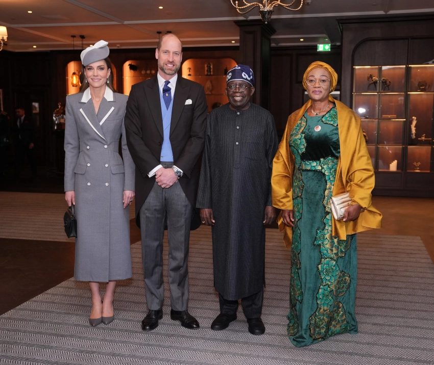 Принц и принцесса Уэльские встретились с президентом Нигерии Болу Тинубу и его женой Олуреми Тинубу, который прибыли в Великобританию с двухдневным визитом. Принц Уильям и Кейт Миддлтон сопроводили гостей к королю Карлу III.