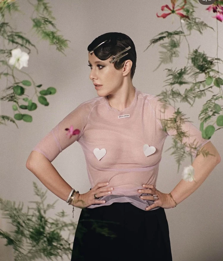 Ксения дала мастер-класс, как носить прозрачный нежно-розовый лонгслив от любимого бренда всех инфлюенсеров Miu Miu. Просто надеваем лонг на тело, а грудь прикрываем сердечками. Плюс темные брюки или юбка. Любимая укладка Собчак в стиле ретро и множество украшений на руках. Для фото в соцсети — в самый раз. А вот, если куда-то идти, то сверху лучше накинуть жакет, например, кожаный. Кстати, розовый цвет идеален для весны: этот оттенок всегда освежает и создает романтичное настроение.