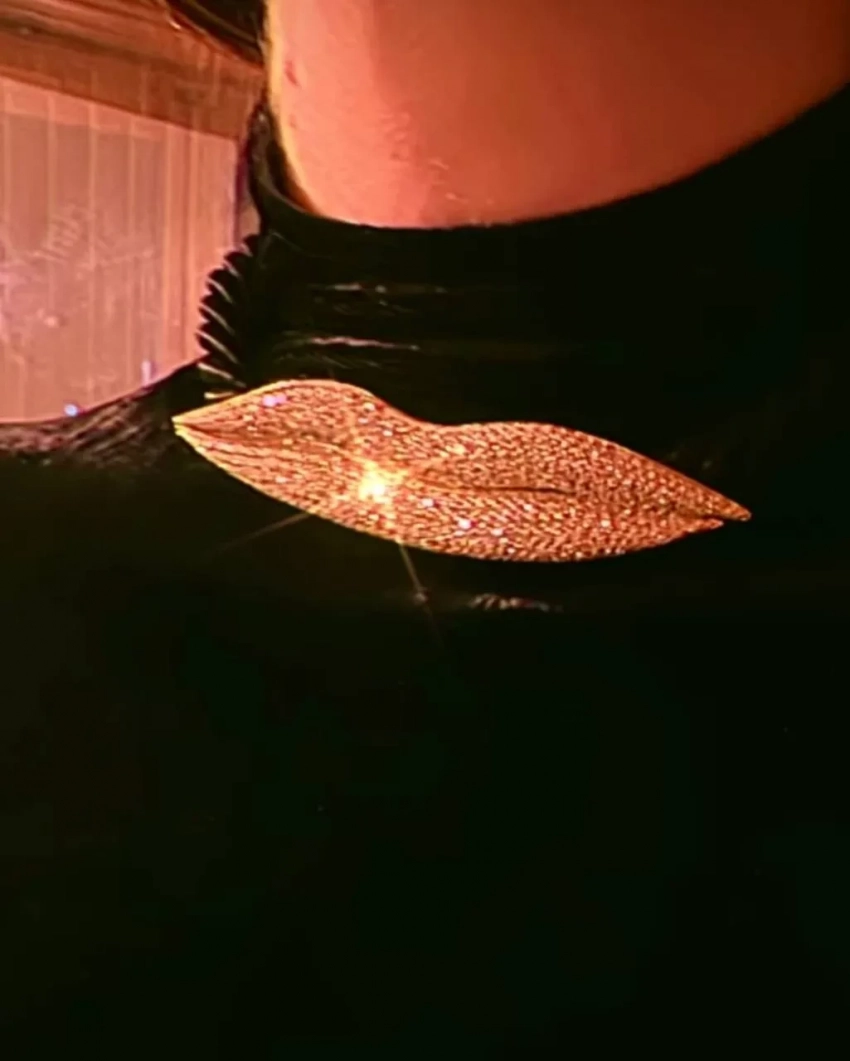 Даша Жукова/Фото: watchandjewel/TelegramЧокер, который выбрала Даша, — оммаж культовой картине 1936 года Observatory Time: The Lovers художника Ман Рэя, который изобразил губы своей возлюбленной Ли Миллер, летящие над Парижем. (Недавно вышел фильм "Великая" о модели и военном корреспонденте Ли Миллер с Кейт Уинслет в главной роли.)