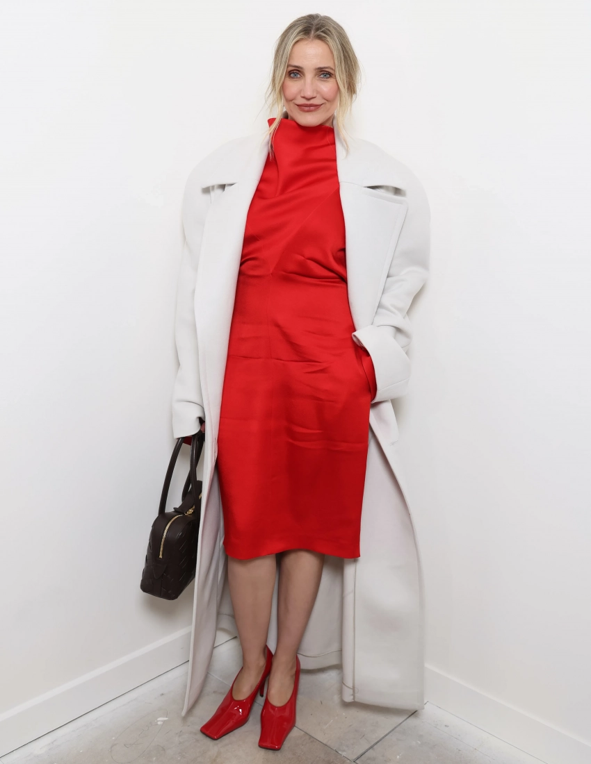 Кэмерон Диас посетила показ Stella McCartney в рамках Недели моды в Париже. 52-летняя голливудская актриса сидела в первом ряду на шоу, звездой которого стала Наталья Водянова. Для редкого выхода в свет она выбрала белое пальто, красное платье и туфли в тон.