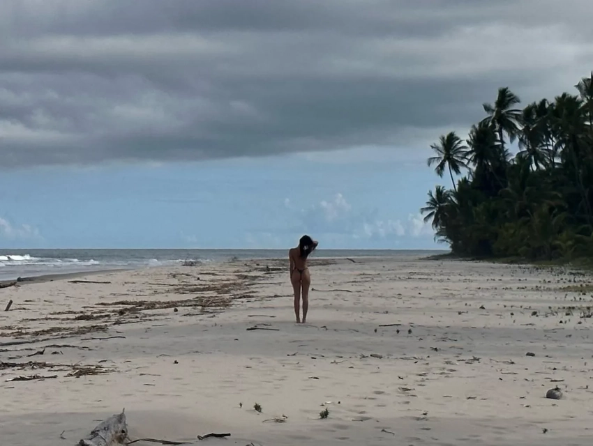 На фотографиях 20-летняя модель позирует в купальнике с кокосом, целуется с возлюбленным, демонстрирует фигуру, повернувшись к камере спиной, и проводит время с друзьями. К снимкам она добавила подпись: "Кокосовая вода и солёные волосы".