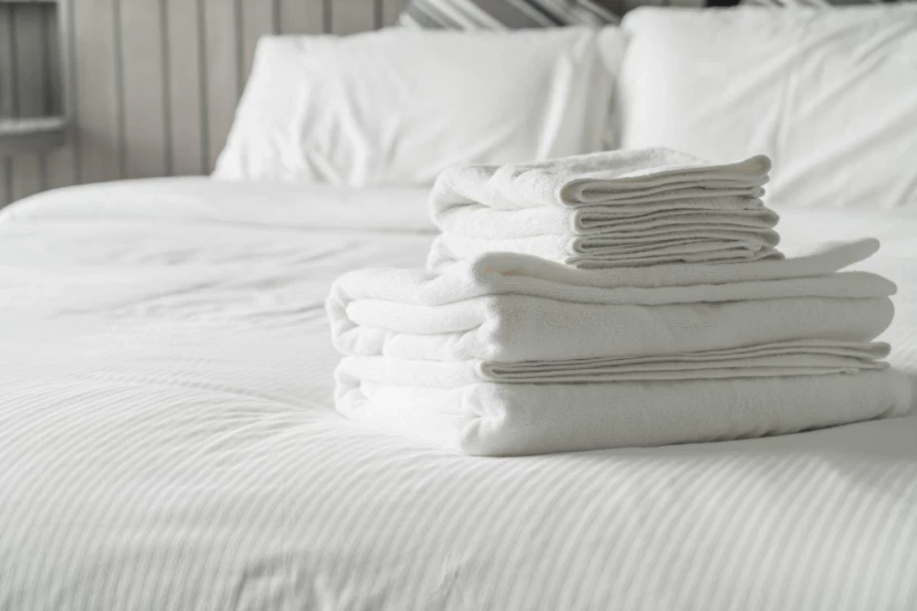 Белые полотенца и постель в отелях — символ свежести. Чтобы поддерживать белизну дома, лучше использовать щадящие средства: кислородные отбеливатели, соду, специальные гели.