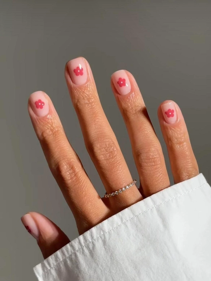 Цветы — ещё один символ романтики, но здесь всё решает подача. Чтобы маникюр выглядел современно, стоит отказаться от сложных, перегруженных композиций в пользу минимализма.